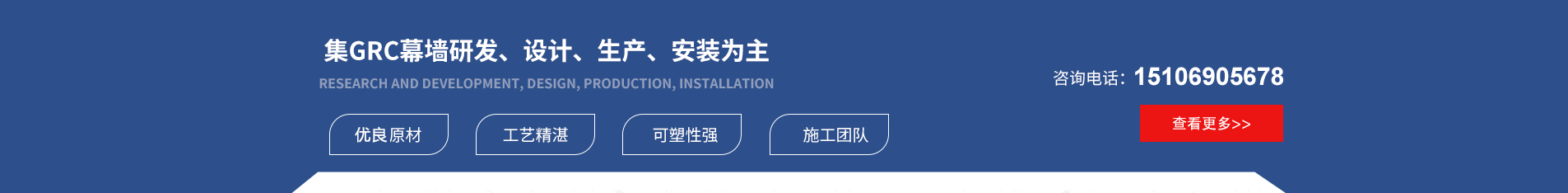 • 是一家集GRC幕墻研發(fā)、設(shè)計(jì)、生產(chǎn)、安裝為主,融GRG、GRP等新型建筑材料創(chuàng)新應(yīng)用為一體的技術(shù)企業(yè)。